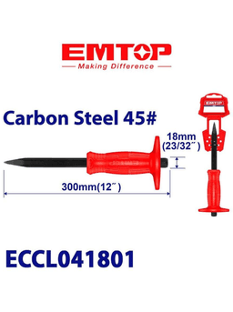 EMTOP ECCL041801 tekiz isgene (zubilo) 300 mm EMTOP ECCL041801 — bu agyr söküş işleri, metallary kesmek, şeýle hem beton we kerpiç diwarlary işlemek üçin niýetlenen, uzynlygy 300 mm bolan güýçli slesar isgenesidir. Gural urgy agramlylygyna ýokary dözümliligi bolan ýörite legirlenen polatdan ýasalandyr. Kesiji gyrasy takyk ýitilen we taplanan bolup, bu bolsa guralyň işjeňlik ukybyny uzak wagtlap saklamagyna mümkinçilik berýär. Häsiýetnamalary: Uzynlygy: 300 mm; Materialy: Ýokary berklikli döwme polat; Görnüşi: Tekiz; Aýratynlyklary: Taplanan işjeň ujy, poslamaga garşy örtük, ýokary urgy dözümliligi.