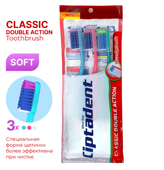 Ciptadent Classic Double Soft diş çotgasy dişleri ýumşak arassalamak üçin, esasanam duýgur dişli adamlar üçin amatly. Ýumşak materiallardan ýasalan.